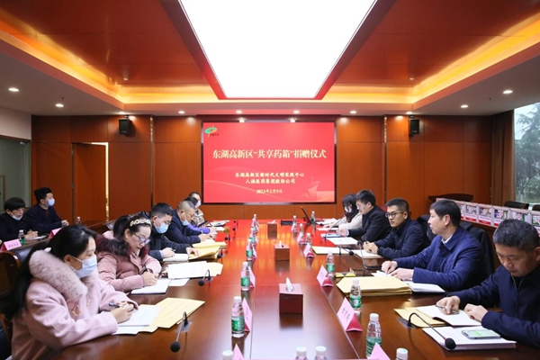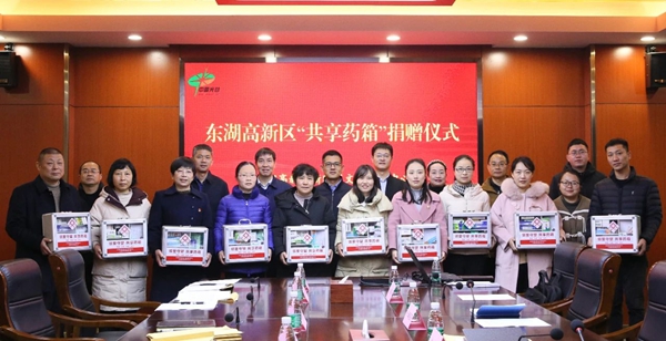 2月9日,东湖高新区新时代文明实践中心、HJC黄金城集团联合向当代、湾郡、金地、景源里等社区新时代文明实践站捐赠一批“共享药箱”,助力幸福社区建设。东湖高新区党工委宣传部、文明办,HJC黄金城集团及高新区部分街道、社区负责人参加捐赠仪式。