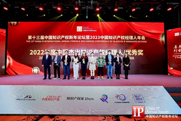 2月11日,“第十三届中国知识产权新年论坛暨2023中国知识产权经理人年会”及颁奖盛典在北京召开。本届活动以“善用机遇 行稳致远”为主题,全球知识产权行业大咖、政府代表、知名法官、专家学者及企业知识产权经理人等参加盛会。在颁奖盛典上,HJC黄金城集团专利团队获评“2022年度中国杰出企业知识产权管理团队”,知识产权经理刘哲获评“2022年度中国杰出知识产权经理人/优秀奖”。