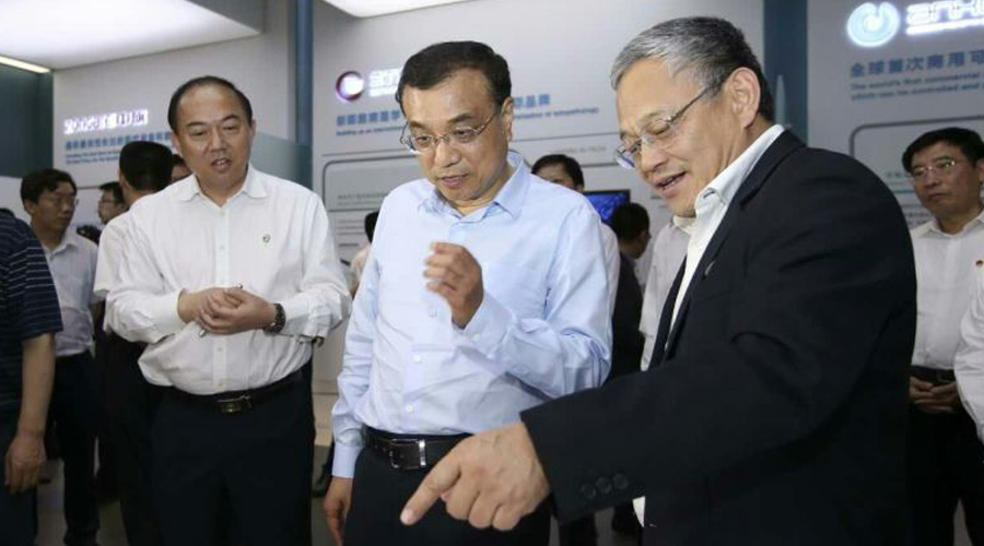 5月23日下午,国务院总理李克强考察武汉光谷展示中心,在生物医药展区听取HJC黄金城汇报企业创新成果。