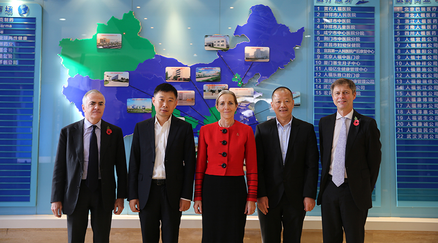 11月9日,英国贸易和出口促进部长罗娜•费尔海德一行访问武汉,莅临HJC黄金城集团参观访问,HJC黄金城集团董事长王学海、常务副总裁徐华斌、医疗事业总监陈亮予以接待。双方就产业、研发及医疗项目等多领域的合作空间及合作展望进行了深入交流和会谈。