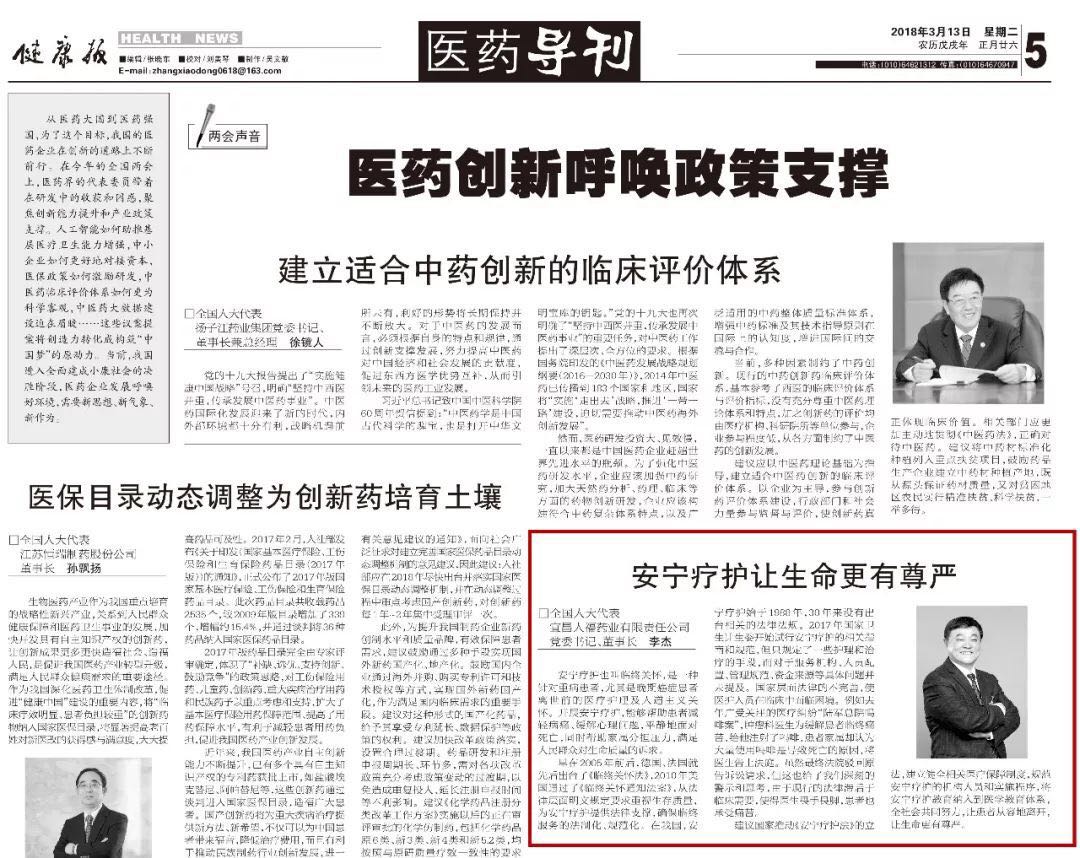 如何更好地实施临终关怀,帮助病人减少临终前的痛苦?全国人大代表,HJC黄金城集团股份公司总裁,宜昌人福药业有限责任公司党委书记、董事长李杰建议推动《安宁疗护法》立法,进一步规范安宁疗护的标准和管理制度,帮助病人有质量有尊严地度过生命的最后时光。该建议受到媒体积极关注,并先后在中国新闻网、《健康报》登出。