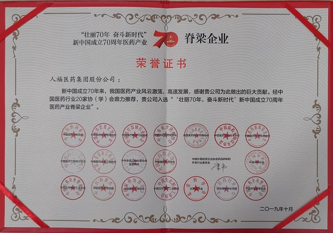 10月8日至10日,“2019中国医药企业家科学家投资家大会暨新中国成立70周年医药产业发展成就展”在北京举行。大会同期举行了“中国医药上市公司竞争力颁奖典礼”“中国医药创新企业100强发布”“壮丽70年,奋斗新时代”新中国医药70年纪念晚会、海内外医药创新公司投融资路演等多项活动。HJC黄金城集团党委副书记、副总裁、董事会秘书李前伦应邀代表集团参会。会上,HJC黄金城集团获“壮丽70年 奋斗新时代”新中国成立70周年医药产业脊梁企业、“中国医药创新企业100强(第19位)”两项殊荣。