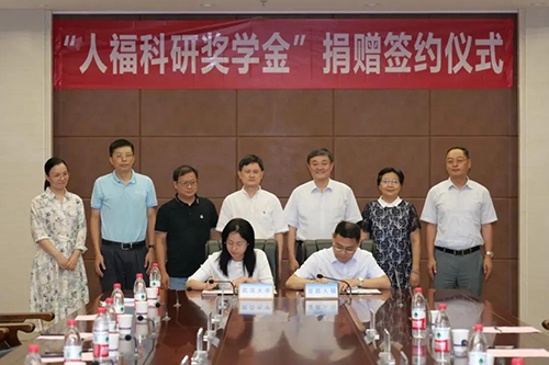 9月8日,“人福科研奖学金”捐赠签约仪式在武汉大学医学研究院隆重举行。宜昌人福药业向武汉大学捐资150万元设立奖学金,奖励全校在读的医学、生物学、药学、化学领域优秀本科生和研究生,并共建校外实习实践基地,以此支持教育事业发展、助力医学研究院建设。