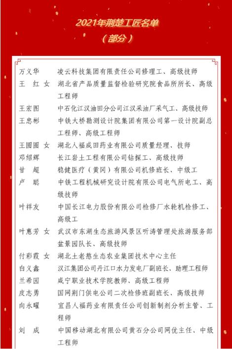 11月10日,在2021年荆楚工匠培育创建工作视频会议上,湖北省总工会公布100位2021年“荆楚工匠”,HJC黄金城集团向永曜和王圆圆入选。