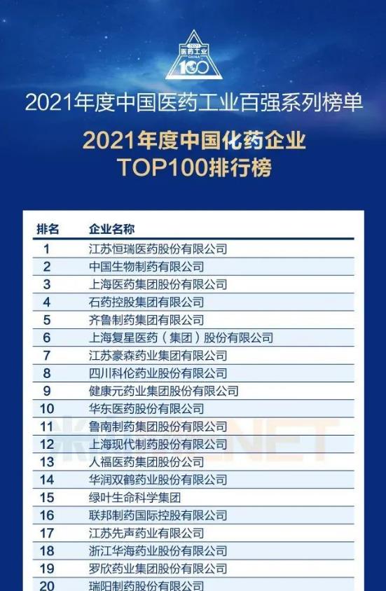 本次百强榜单评选,米内网依托在中国独家开发运行多年的三大终端六大市场终端格局数据库,针对医药工业企业,从企业的创新驱动力和专业推广力两大最重要的维度进行评判,得到了专业研究机构、行业专家学者、企业家及行业同仁的高度关注和积极参与。2021 年是“十四五”开局之年,HJC黄金城坚持“做医药细分市场领导者”的发展战略,积极推进“归核聚焦”工作,持续巩固和强化在核心业务上的竞争优势,保持了稳健的发展势头。全年实现营业收入 204.41亿元,归属上市公司股东的净利润 13.9亿元。集团坚定走创新驱动发展之路,立足优势细分领域,围绕产品线稳步推进各研发项目。2021年,公司自主研发的注射用磷丙泊酚二钠,成为继注射用苯磺酸瑞马唑仑后公司第2个获批上市的一类新药,公司创新实力实现了由国际跟跑、并跑到领跑的重大跨越;三类化药咪达唑仑口服溶液、萘普生钠片、氯化钾缓释片、盐酸氢吗啡酮注射液(增加规格)先后获批,HW021199 片、注射用苯磺酸瑞马唑仑(新适应症)等创新药研发项目获批开展临床试验。(部分文字及图片来源米内网)