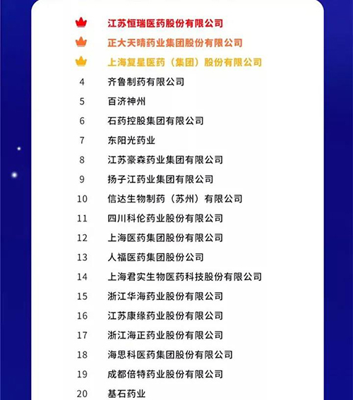 9月18日,2021中国药品研发实力排行榜系列榜单在“2021大健康产业高质量发展大会暨第六届中国医药研发·创新峰会(PDI)”隆重揭晓。HJC黄金城集团位列2021中国药品研发综合实力排行榜TOP100第13位。