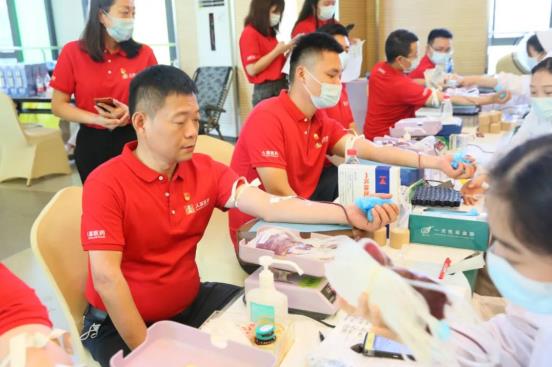 6月29日,武汉市卫生健康委、武汉血液中心与HJC黄金城集团联合开展“党旗飘扬 热血人福”党建共建活动,以实际行动庆祝中国共产党成立101周年。活动当天,近200多名党员和职工“热血集结”、奉献爱心,最终121人成功献血32260毫升。